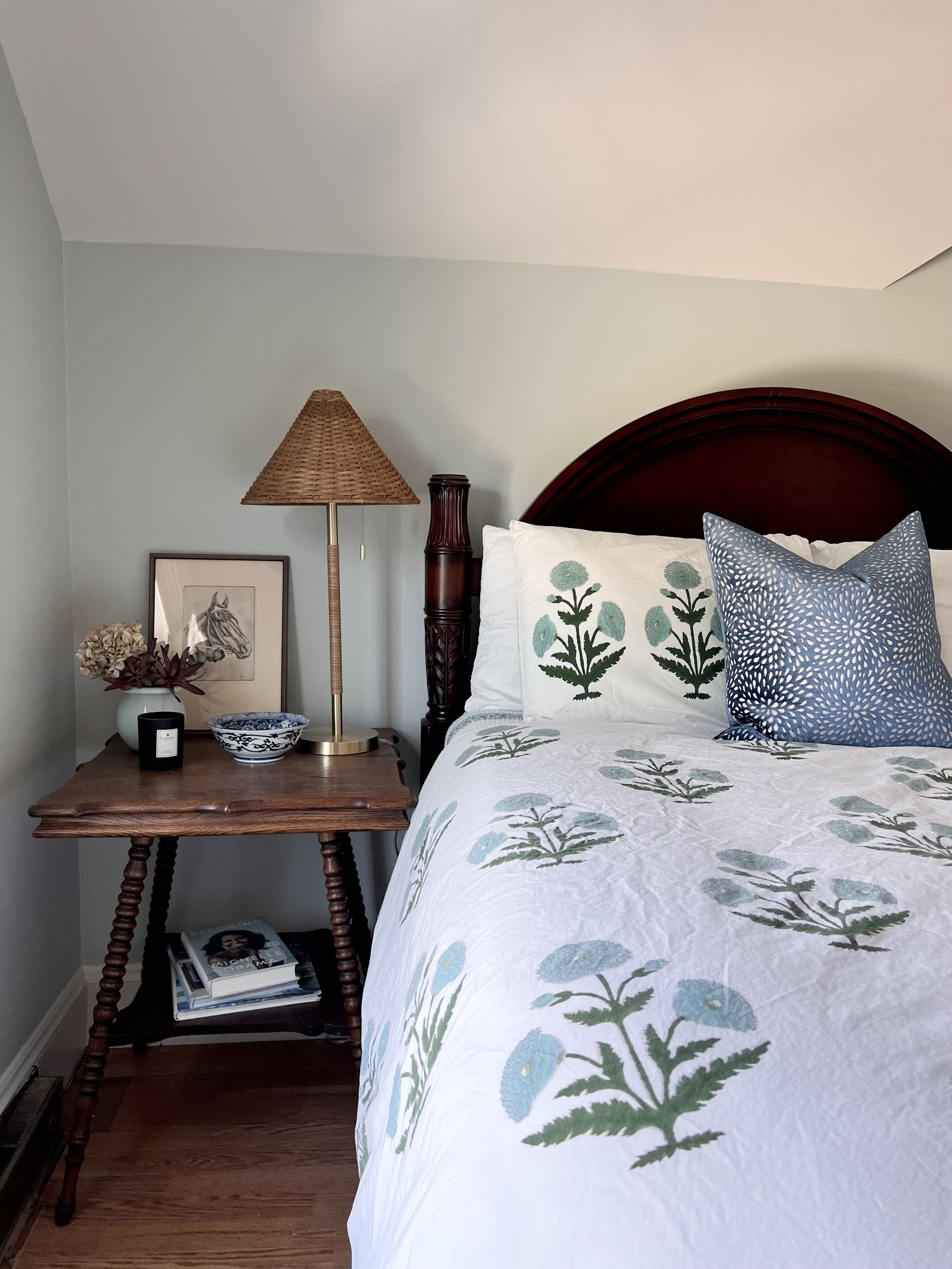 It felt like fate that Faye came when she did. Several things aligned and one of them was that I had painted her room before I found out we were pregnant. I did not plan to become pregnant and I was not trying to creating a baby’s room. I just wanted to paint that room another color. It was previously painted a dark purple that my husband picked out. Yes, you heard me correctly. I didn’t love the color and it didn’t go with the block print bedding I picked out. I am so glad I painted it before I was pregnant, because I felt so exhausted in my first trimester and my second trimester was around Christmas so I was just too busy.